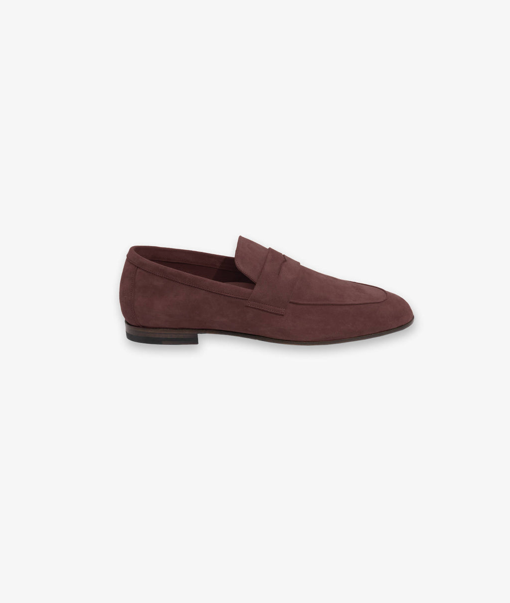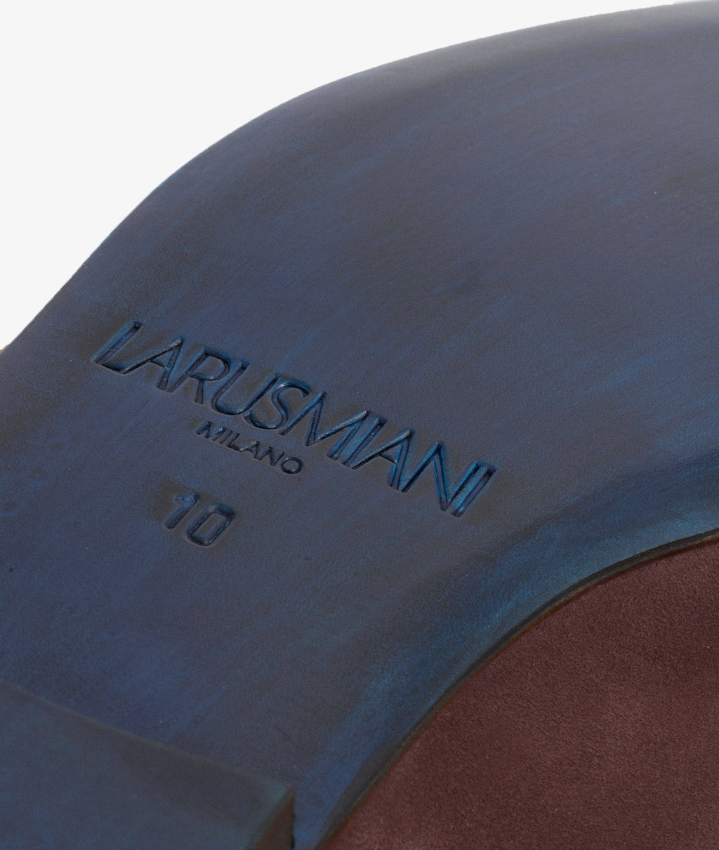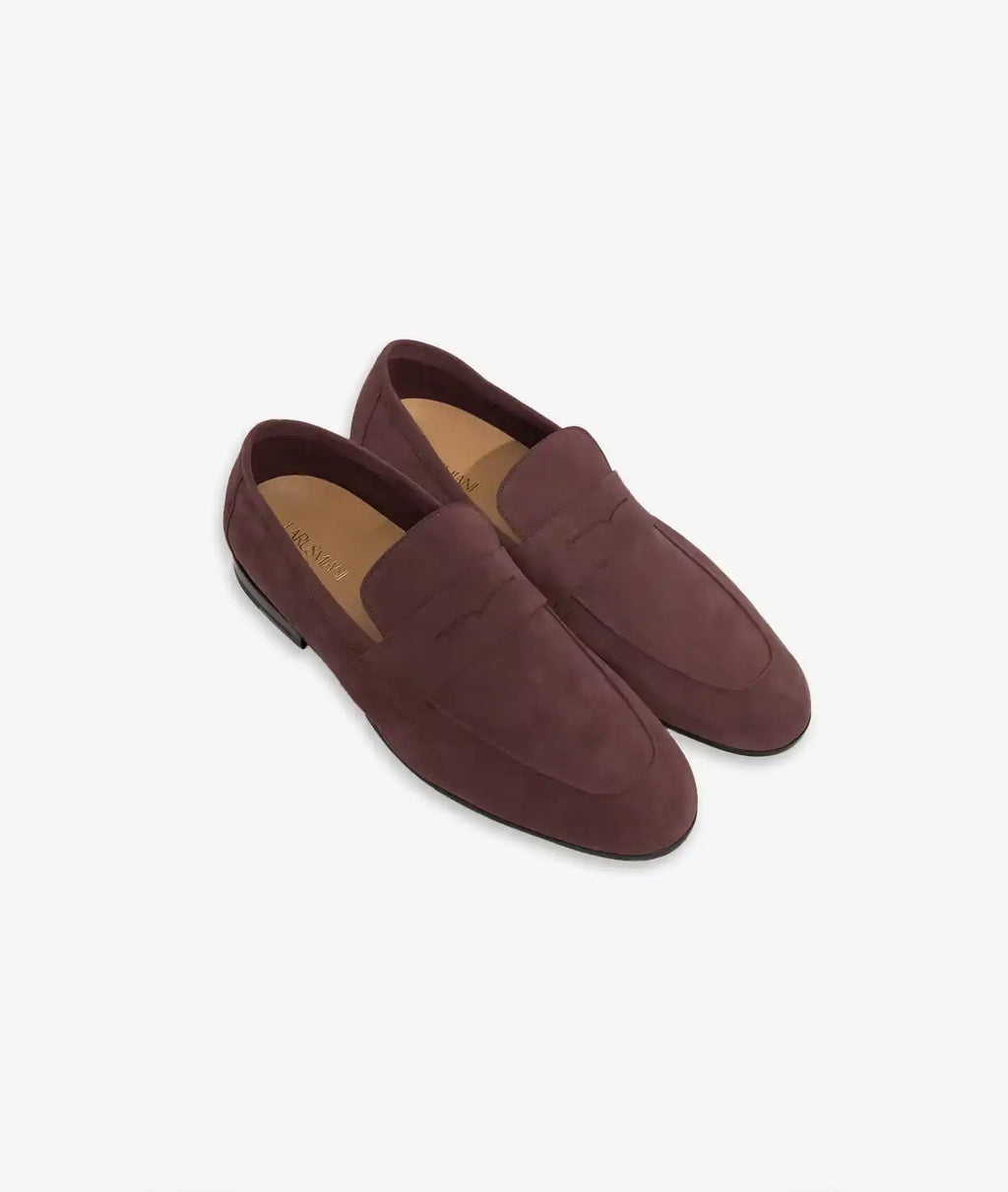 Loafer made of suede calf leather, handcrafted to combine elegance and comfort. The leather sole, flexible and durable, is embellished with the Larusmiani logo, while the front strap, inspired by the silhouette of a seagull, adds a distinctive touch of refinement and style.