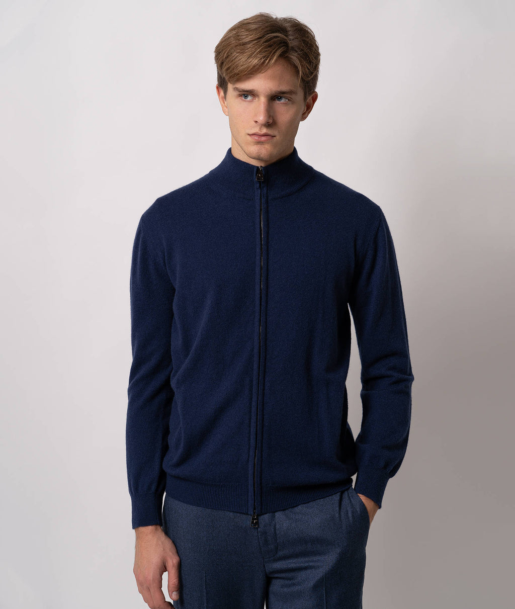 The Helsinki full-zip cardigan, made of fine single-strand cashmere, combines softness and elegance with the practicality of a garment designed for everyday wear. Its comfortable and versatile fit makes it perfect for any occasion, ensuring a refined look without sacrificing comfort.