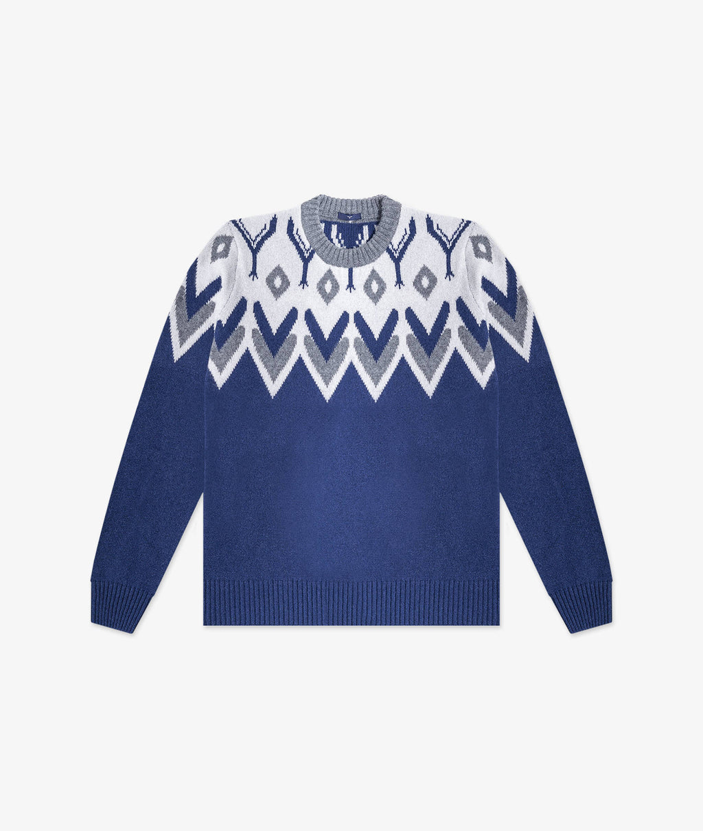 Crafted from fine two-ply cashmere, this crew neck sweater offers an impeccable fit thanks to its classic set-in sleeves and ribbed trims. The refined pattern adorning the yoke is a stylized interpretation of the iconic LARUSMIANI logo—a distinctive detail that adds a unique touch. Perfect for elevating your winter looks with absolute style and comfort, celebrating tradition with a contemporary twist.