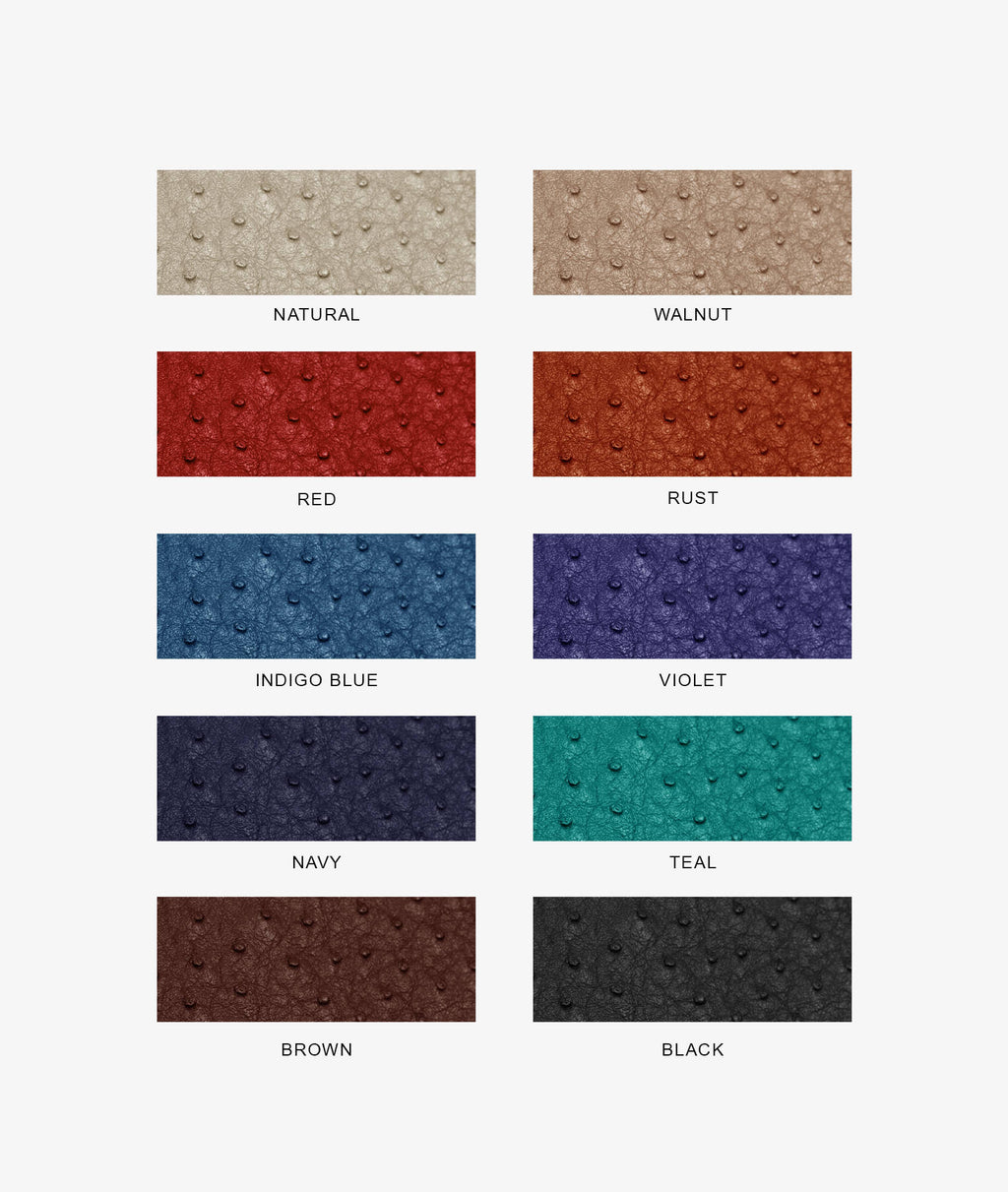 The Ostrich wash bag is handmade from fine ostrich leather, known for its softness and durability, and finished with elegant nickel-free brass details. Striking a perfect balance between elegance and functionality, it is the ideal accessory for those who wish to travel in style.